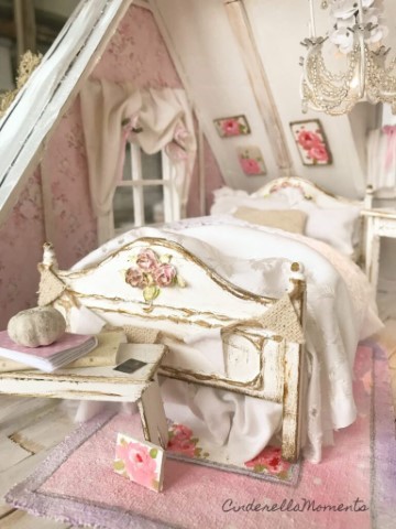 In the corner of her room in shadow lit air, Wreathed by dust motes, denizens of lore,